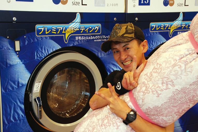 フトン巻きのジローを運営するのは、㈱ランドリージロー(沖縄県島尻郡南風原町、森下洋次郎社長)。2018年10月末の時点で、沖縄県内で13店舗(直営6、FC7)を展開する。2016年6月にオープンした1号店は、衣類洗いがメインの通常のコイン店であったが、1年後、大型洗濯乾燥機と独自技術の「フトン巻き」(商標登録済み)により、日本初のフトンに特化したコインランドリーへと転換(同社では“フトンシフト”と呼ぶ)。