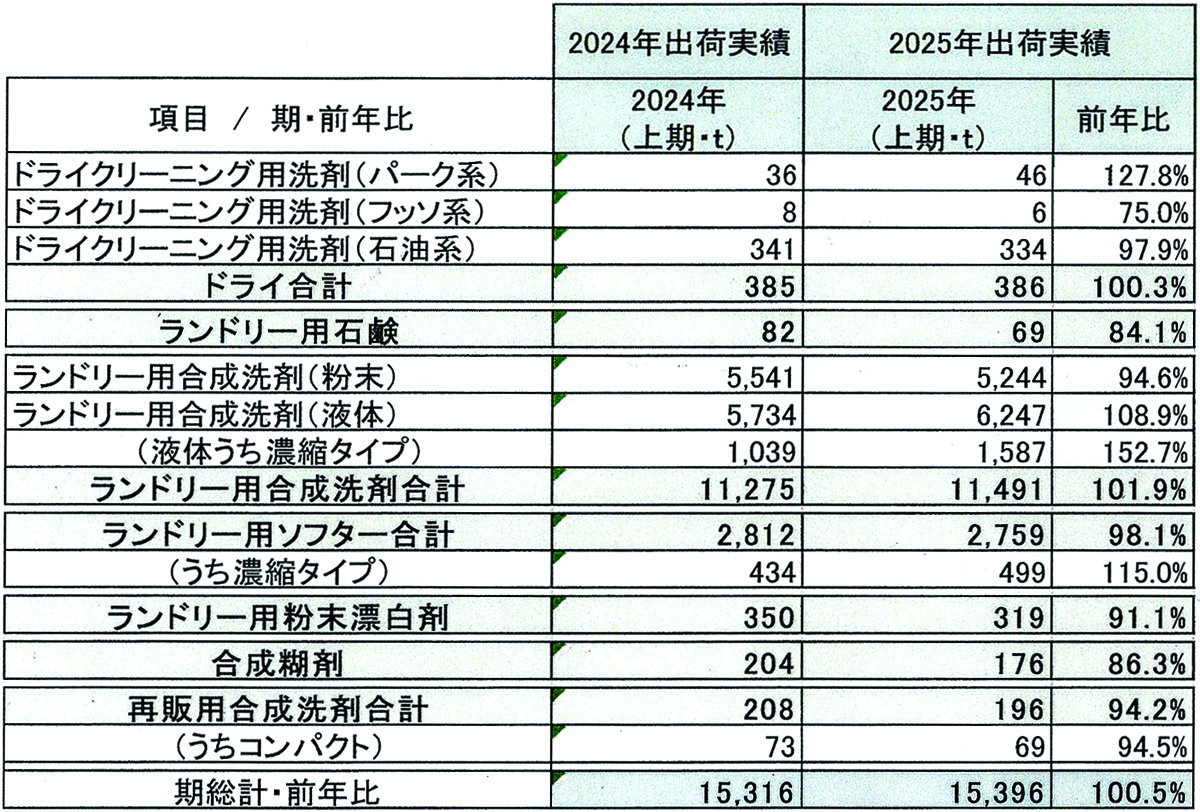2025年上半期・洗剤出荷実績 前年から微増の15,396トン
